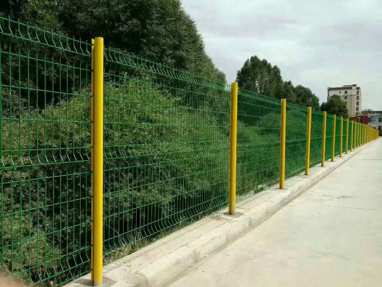 三角折彎護(hù)欄網(wǎng)又叫桃型柱護(hù)欄網(wǎng)產(chǎn)品特點設(shè)計獨特獨特嵌入式掛鉤設(shè)計,使立柱與圍網(wǎng)形成堅固的整體。三角折彎護(hù)欄網(wǎng)產(chǎn)品外觀設(shè)計曾獲法國工業(yè)設(shè)計大獎,并取得專利證書。性能優(yōu)良產(chǎn)品使用高質(zhì)量原材料,并經(jīng)過特殊表面處理,抗腐蝕性極高。成品享受十年質(zhì)量保證。安裝簡便產(chǎn)品安裝時無需特殊配件,采用推進(jìn)式安裝方式,易于撐握,簡便快捷,降低成本。三角折彎護(hù)欄網(wǎng)表面處理工藝鍍鋅鋼帶、鋼絲+高附著力靜電聚酯噴涂色彩近兩百種的顏色及磨砂表面處理可供選擇圍網(wǎng)安裝方式(可選)直接填埋式安裝在矮墻上或水泥地面上通過法蘭盤安裝安全配件(可選)根據(jù)場地安全防護(hù)要求,圍網(wǎng)上可加裝彎頭、刺絲、虎刺。