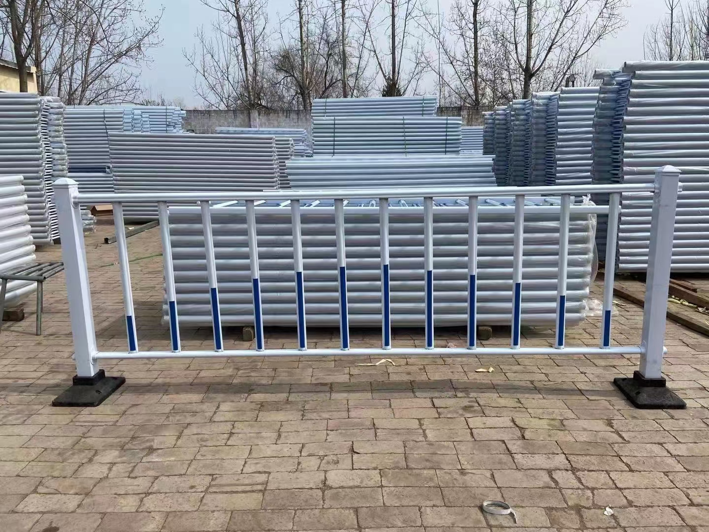 (3)道路護(hù)欄網(wǎng)放在交又路口的人行道外側(cè)或人行道與車行道之間的。主要是用于防止行人在路口內(nèi)、車行道上任意斜穿、橫穿,其次是防止由汽車輛為躲避障礙車輛失靈闖入人行道。它起到使交通秩序良好,保障行人安全的作用。